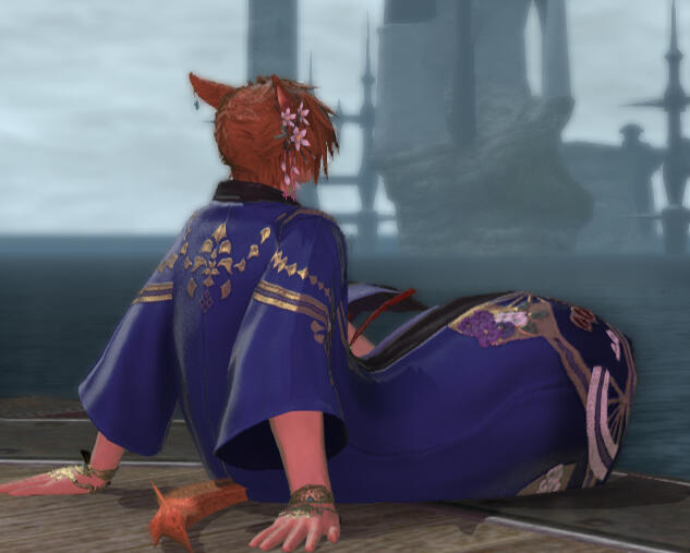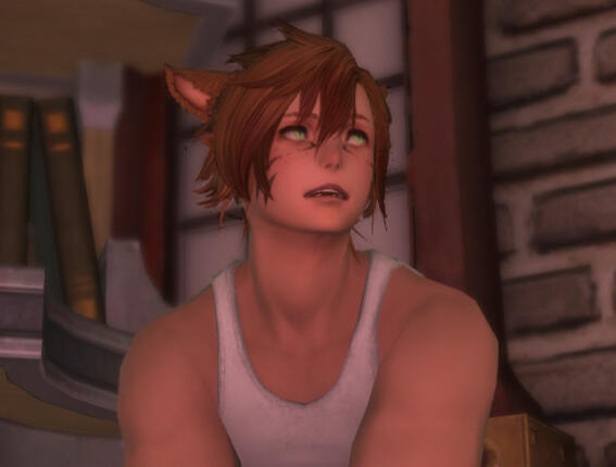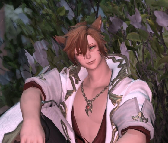 His curiosity drives him, he's polite to a fault, and can be flirtatious at times. However, he can become quite bashful if someone starts off by flirting with him. If you catch him while he is working at Craw Daddies, he is much more likely to be more forward with you as that is often what the job demands.He can also be easily distracted, often getting caught in thought when his favorite topics are brought up in conversation. His Miqo'te features (ears and tail) will quickly reveal his emotions by wiggling when he is filled with joy, or wilting when he becomes upset.